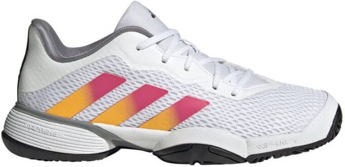 Het perfecte platform voor domineren op hardcourt. Deze junior adidas Barricade tennisschoen heeft een intuïtief vetersysteem dat je voet verankert door de tong strak te trekken zodat-ie de vorm van je wreef volgt. Het Geofit-systeem in de hiel helpt je om je één te voelen met je schoenen. De dempende Adiprene-middenzool en het Torsion System zorgen voor comfort en stabiliteit. Het bovenwerk bestaat voor ten minste 50% uit verschillende gerecyclede materialen. Dit product vertegenwoordigt slechts één van onze oplossingen om plastic afval te verminderen. Verstelbaar vetersysteem. Bovenwerk van mesh. Geofit-hiel. Torsion System. Adiprene-demping.