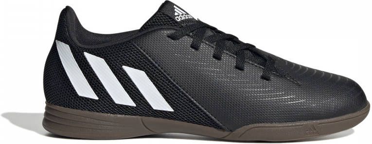 adidas Performance Predator Edge.4 IN Jr. voetbalschoen met vetersluiting voor jongens in de kleur zwart. Deze schoen heeft een bovenwerk van imitatieleer. Deze schoenen bieden optimale grip in de zaal of in een pannakooi. De binnenkant is gevoerd met ademend mesh en de zijkant heeft de welbekende 3-strips.