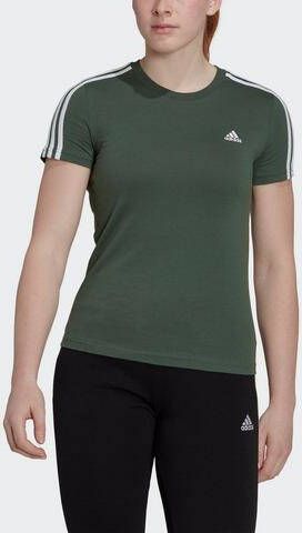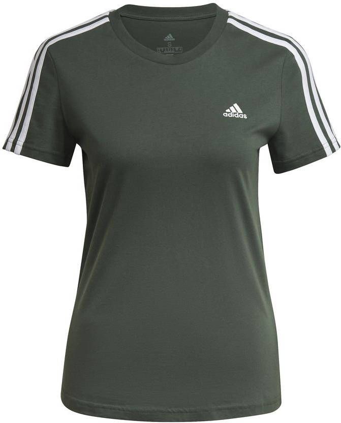 adidas T shirt 3 Stripes Groen/Wit Vrouw