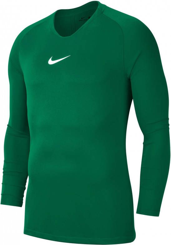 Het Nike Dri FIT Park Ondershirt Lange Mouwen Groen geeft je bescherming tijdens wedstrijden waar een beetje extra warmte welkom is, maar remt je niet af. De elastische stof en verborgen duimlussen zorgen voor een gestroomlijnde laag die soepel beweegt onder je tenue. Het ondershirt is voorzien van de Dri-FIT technologie en dat zorgt ervoor dat je droog, comfortabel en scherp blijft. De gladde afwerking van het shirt zorgt voor een wrijvingsarme onderlaag. Het Nike ondershirt heeft een strakke pasvorm voor een gestroomlijnde look en feel en heeft de Nike swoosh midden op de borst staan.