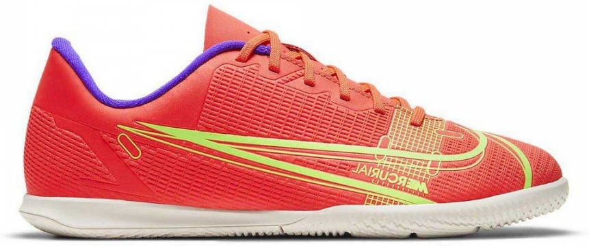 De Nike Mercurial Vapor 14 Club IC is gemaakt voor snelheid op straat, in de zaal of op indoor ondergronden.Het visgraatpatroon aan de onderkant zorgt voor betere balaanname tijdens 5-tegen-5 wedstrijdjes. De grip aan de bovenkant zorgt voor nauwkeurige balcontrole. Uitzonderlijk balgevoel bij hogere snelheden Het voorgevormde, synthetische bovenwerk heeft een patroon met textuur voor betere balcontrole bij het dribbelen op hoge snelheid. Gemaakt voor beweging De rubberen buitenzool is ontwikkeld op basis van analyses van spelersbewegingen en geeft grip in meerdere richtingen op straat, in de zaal en op indoor ondergronden. Naadloze pasvorm en feel De comfortabele voering wikkelt zich om je voet en voelt natuurlijk en aansluitend aan.