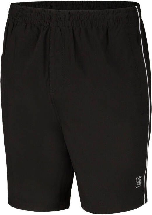 Set en Match in dit halflange, zwarte Set Tennisshort voor heren van Sjeng. Het heeft twee steekzakken en een achterzak met klittenbandsluiting. Dankzij de Sjeng Sports Cool Match-technologie blijf je droog, koel en comfortabel tijdens het sporten.- Materiaal: 100% polyester Pasvorm: Normaal Cool Match-technologie: Houdt je droog, koel en comfortabel Elastische tailleband 2 steekzakken Achterzak met klittenband Ons model is 188 cm lang en heeft maat M.
