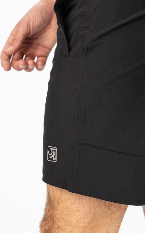 Heren sportshort van Sjeng Sports. Deze korte sportbroek heeft een elastische boord met aansnoerkoord. De short heeft twee steekzakken en op de achterkant zit een zakje met klittenbandsluiting. De short is geheel gevoerd met mesh. De short is gemaakt van CoolMatch materiaal, wat zorgt voor een goede vochtregulatie.